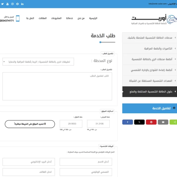 مشروع موقع اوربت للطاقة الشمسية الذي نفذته شركة جبوس لتطوير الأعمال، يُعد نموذجًا متميزًا لبراعتنا في تطوير حلول الويب المخصصة. تم تصميم هذا الموقع لشركة متخصصة في خدمات وحلول الطاقة الشمسية، حيث يُبرز الموقع كفاءة وابتكار الشركة في هذا المجال. نُركز في تصميمنا على توفير تجربة مستخدم سلسة وتفاعلية، مع مراعاة أحدث معايير الجودة والأمان. يحتوي الموقع على ميزات متقدمة مثل أنظمة إدارة المحتوى الديناميكي والتكامل مع أنظمة الطاقة الشمسية لعرض البيانات الحية. كل هذا مدعوم بتصميم جذاب ومتجاوب يضمن توافق الموقع مع مختلف الأجهزة والمتصفحات، ما يعكس التزامنا بتقديم حلول تقنية تلبي احتياجات عملائنا بكفاءة وفعالية.
